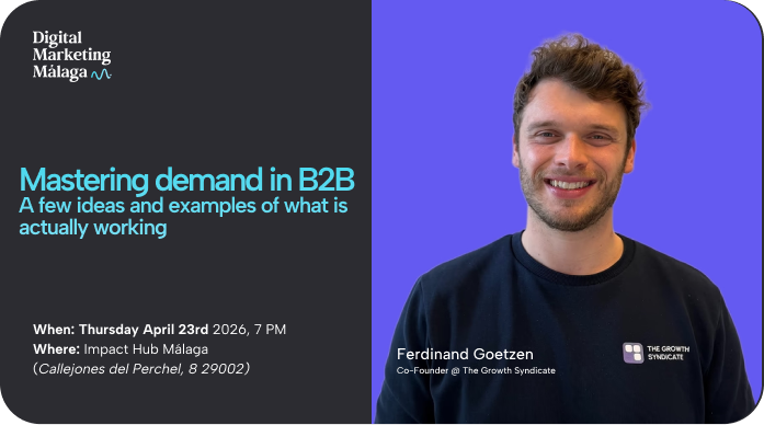 Join us at Impact Hub Málaga – Perchel for a new meetup: Mastering demand in B2B. There’s a lot of discussion, debates and ideas around the concept of demand generation, demand creation vs. Lead generation / demand capture. Ferdinand Goetzen will share some ideas and examples of what is actually working (e.g. hot take: there’s no such thing as creating demand…)